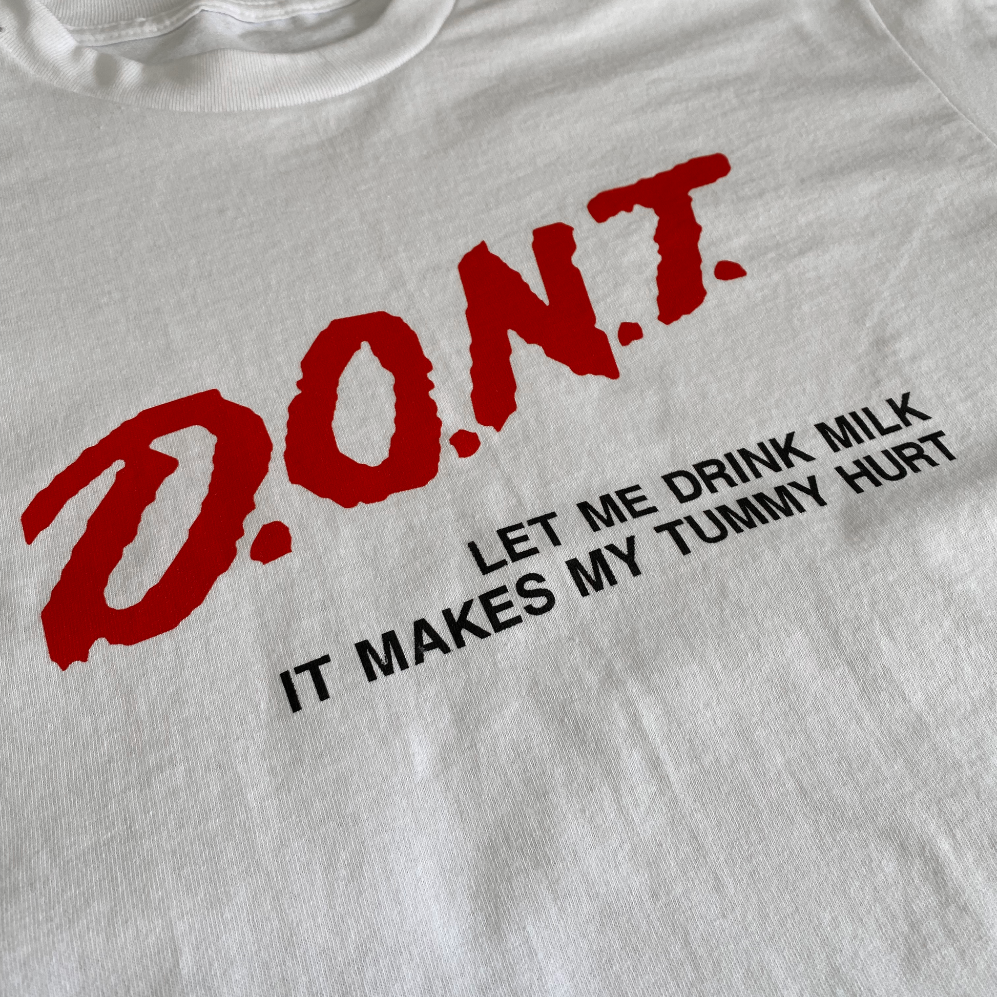 DONT LET ME DRINK MILK IT MAKES MY TUMMY SHIRT DARE SHIRT